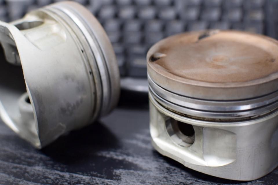 このエンジンオーバーホール時に、交換できる部品(特に消耗品類)はすべて新品に交換しました。このとき、ピストンヘッドも4発とも新品交換したのですが、古くなったピストンヘッドを記念にもらっていて、家とか会社のPC机などに飾ってました。
